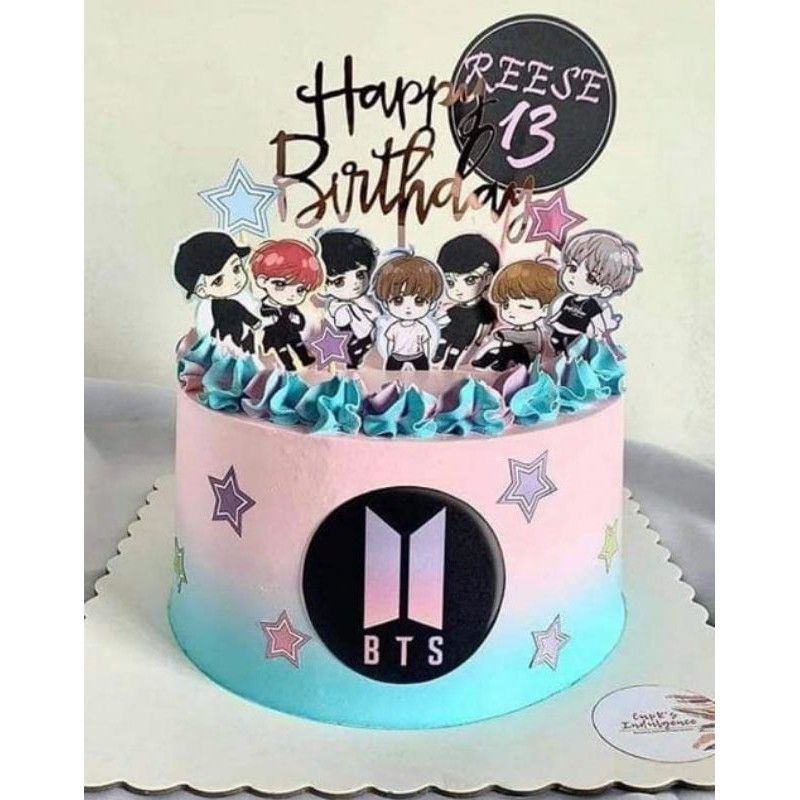 Check bts theme cake price, designs & images to place an order! As a bts birthday cake, it is sure to make any fan's special day, that much more special. Personalized bts cake topper, kpop, happy birthday cake topper.